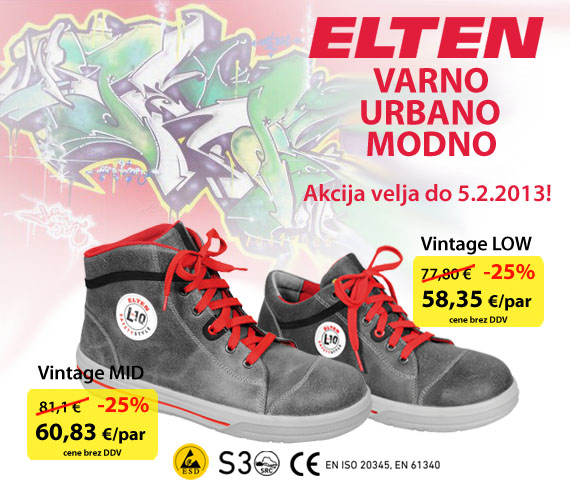 Da boste pri svojem delu dobro zaščiteni, modni, predvsem pa varni, smo za vas izbrali atraktiven model čevljev Vintage vodilnega nemškega proizvajalca Elten - v različici MID in LOW.