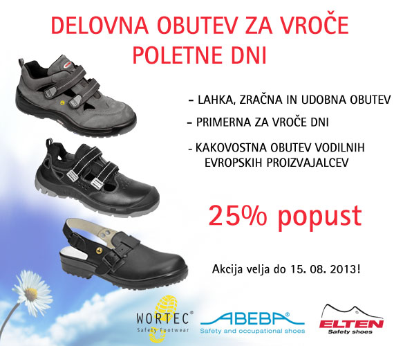 Pripravili smo vam izbor zaščitne obutve, ki se prodaja skozi vse leto za bolj topla delovna okolja, posebej pa je primerna za vroče poletne dni. Kakovostna obutev vodilnih evropskih proizvajalcev je prava izbira za vaša stopala, saj vam nudi udobje, zračnost in lahkotnost na vsakem koraku.