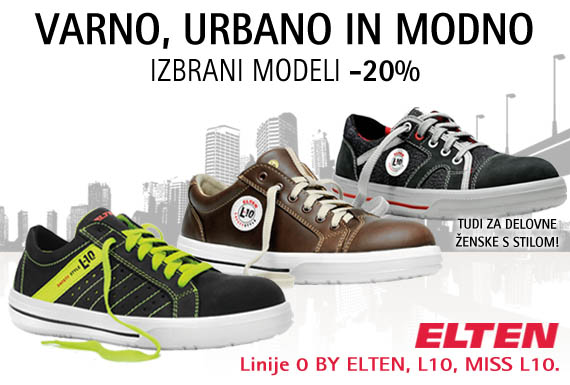 Tudi delovna obutev je lahko hrati varna in modna. Elten - vodilni nemški proizvajalec delovne obutve je oblikoval posebne linije obutve, ki združujejo vse kar je pri vašem delu pomembno. Na prvem mestu sta zagotovo varnost in udobje pri nošenju, dodali pa so še moden izgled. Obutev tako lahko nosite tudi v prostem času. Oglejte si pestro ponudbo obutve z ali brez zaščitne kapice ter različnih izgledov. Posebna linija Miss L10 pa nudi obutev oblikovano posebej za delovne ženske s stilom.