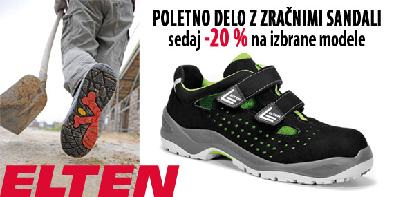 Zračna zaščitna obutev Elten nudi največje zadovoljstvo s svojo ergonomsko obliko skupaj z vsemi varnostnimi lastnosti, ki jih potrebujete za dinamično delo. V tej akcijski ponudbi smo za vas pripravili ugodno znižanje, da bo poletno delo čim bolj prijetno.
