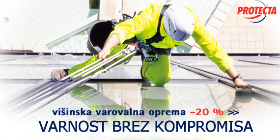 Širok nabor izdelkov iz programa višinske varovalne opreme Protecta vam sedaj nudimo po znižani ceni s 20 % popustom. Ker pa je pavilna uporaba in ustreznost opreme ključnega pomena, za vas omogočamo tudi strokovne izobraževalne programe in montaže ter izvajamo periodične preglede in servise.