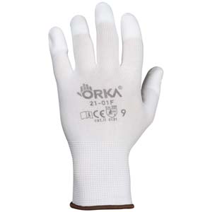 Imajo standarde EN 388 3121, EN 420 in EN 14362-1. So odporne na mehansko obrabo in sledijo vzorcem zaščitnih rokavic ORKA 21-01F. Kombinacija materialov poliuretana in gosto tkanega brezšivnega poliestra (13 niti / cm) poskrbi za prijetno in fleksibilno uporabo. Delovne rokavice se ponašajo tudi s ’touch screen’ tehnologijo. Njihove konice prstov delujejo tudi na zaslone na dotik. S tem omogočajo lažje upravljanje elektronskih naprav, kar vpliva na način in kakovost dela.