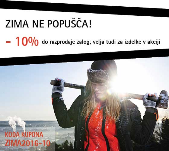 Zimski kupon za 10-procentni popust lahko vnovčite poleg akcijskih cen ob nakupu izbranih artiklov naše zimske ponudbe oblačil in obutvije