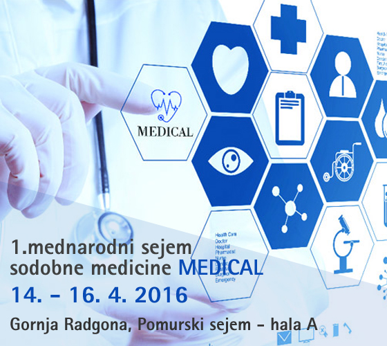 Prijazno vas vabimo, da nas obiščete na 1. mednarodnem sejmu sodobne medicine Medical, ki bo v Gornji Radgoni od 14. - 16. 4. 2016. Dogajanje bo potekalo v prostorih Pomurskega sejma (Cesta na stadion 2), ki bodo odprti vse dni od 9.00 do 18.00 ure.