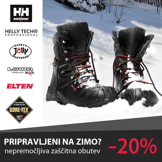 Da boste pripravljeni na vsakodnevne zimske vremenske spremembe, izberite NEPREMOČLJIVO obutev, ki vsebuje GORE-TEX® ali HELLY TECH® membrano. Za vas smo pripravili posebno ponudbo visoko kakovostne delovne obutve priznanih proizvajalcev Helly Hansen Workwear, Jolly Safety Footwear, Elten in Lowa, ki zagotavljajo varnost, udobje in dober izgled na delovnem mestu in v prostem času.