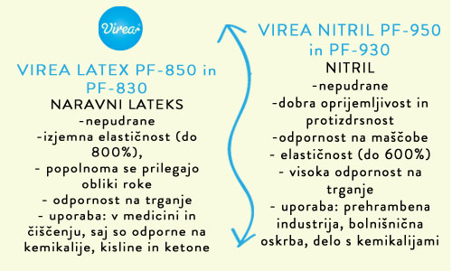 - rokavice so v primerjavi z lateksom precej bolj vzdržljive, saj je material ustvarjen iz molekul, ki so povezane skupaj,