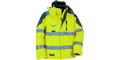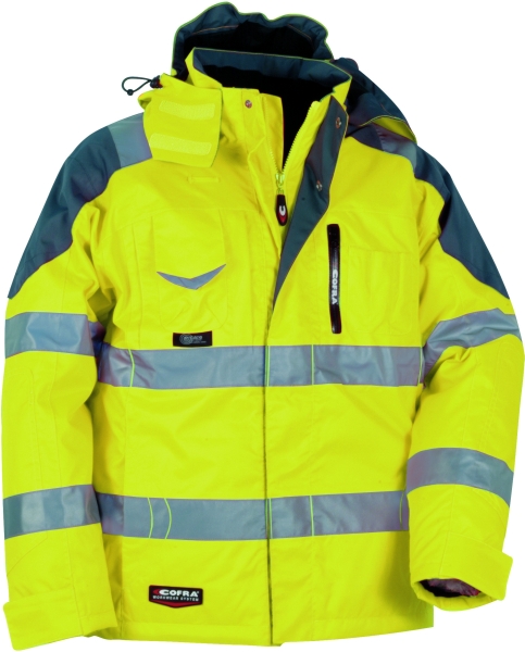 3M odsevni trakovi, žep za telefon iz E-CARE materiala, zanka za slušalke, varjeni šivi, dva prsna žepa za vodoneprepustno zadrgo, žep za pisalo, notranji žep, ločljiva in nastavljiva kapuca, ojačani komolci, nastavljiv patent na zapestju, zapenjanje jakne z zadrgo in poklopcem, podloga iz flisa