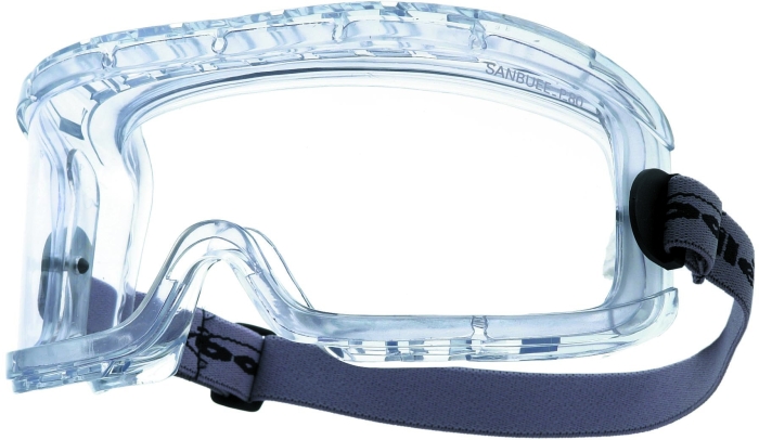 Zaščita pred trdimi delci in brizgi tekočin, PVC okvir, veliko panoramsko vidno polje, zračniki, varovanje pred razlivom tekočin, nastavljiv najlonski trak, vrteč zglob, acetatna, neroseča leča, primerna za nošenje preko korekcijskih očal