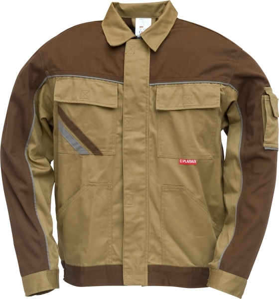 Jakna namenjena za varovanje pred umazanijo in prahom, tribarvna kombinacija, lahko vzdrževanje, dolga življenska doba, zapenjanje s pomočjo zadrge skrite s prekrivno letvijo, na kateri je nameščen sprimni trak, prsna žepa s prekrivno letvijo in sprimnim trakom, žep na levem rokavu, prilagodljivi rokavi v zapestju s sprimnim trakom, elastičen zadnji del pasu, pokončni gubi na hrbtni strani