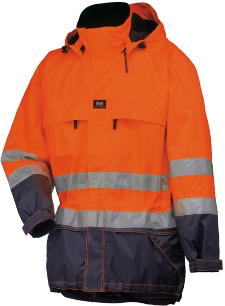 Zaščitna nepremočljiva delovna bunda v fluorescentno oranžni barvi, odsevni trakovi ...