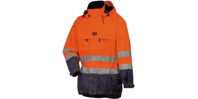 Nepremočljiva bunda, prednje zapenjanje z dvojno zadrgo in pokrivno letvijo s sprimnim trakom, odsevniki, ventilacijske odprtine z zadrgo pod rokami, dva prsna žepa, žep za mobitel, zanke za orodje, dva stranska žepa, sprednja zadrga s prekrivno letvijo, ločljiva kapuca, kapuca narejena za čez čelado, nastavljiva rokava v