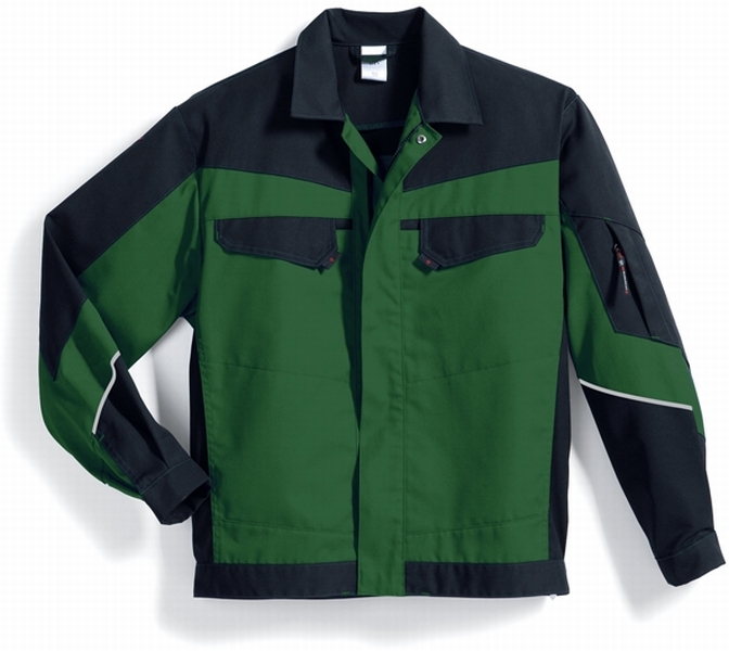Zapenjanje spredaj z zadrgo s prekrivno letvijo, dva prsna žepa s prekrivno letvijo, držalo za pisalo, žep za mobilni telefon z zadrgo na rokavu, notranji žep, manšete s pritiskači, odsevniki, pritiskači na notranji strani za pritrditev prešite podloge (naročite posebej), primerno za industrijsko pranje