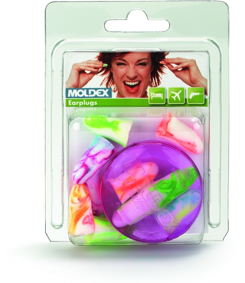 Dva para čepkov za zaščito sluha v priročni PVC škatlici.