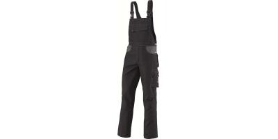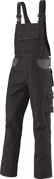 Raztegljive naramnice s plastičnimi zaponkami, dvojni žep na naprsniku z zadrgo in prekrivno letvijo, dva žepa za pisalo, podaljšan hrbtni del, prilagodljiva širina pasu, D-obroč za pritrjevanje orodja in ostalih pripomočkov, dvojni stranski žep na levi hlačnici, dva zadnja žepa s prekrivno letvijo, žep za mobilni telefon, dvojni stranski žep za ravnilo na desni hlačnici, ergonomska oblika na predelu kolen omogoča večjo fleksibilnost pri gibanju in udobje
