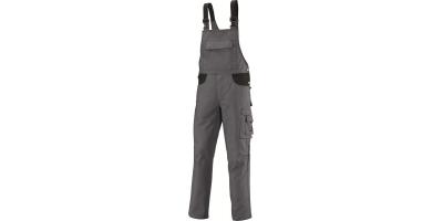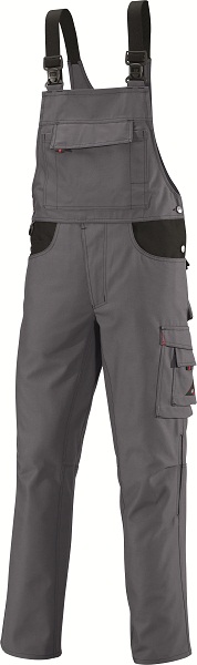 Raztegljive naramnice s plastičnimi zaponkami, dvojni žep na naprsniku z zadrgo in prekrivno letvijo, dva žepa za pisalo, podaljšan hrbtni del, prilagodljiva širina pasu, D-obroč za pritrjevanje orodja in ostalih pripomočkov, dvojni stranski žep na levi hlačnici, dva zadnja žepa s prekrivno letvijo, žep za mobilni telefon, dvojni stranski žep za ravnilo na desni hlačnici, ergonomska oblika na predelu kolen omogoča večjo fleksibilnost pri gibanju in udobje