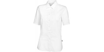 Ženski kroj, dolžina 65 cm, zapenjanje z gumbi spredaj, kratki rokavi, srajčni ovratnik, primerno za industrijsko pranje, primerno