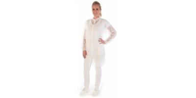 Bel kombinezon, elastičen oprijem okoli zapestja in gležnjev, s kapuco