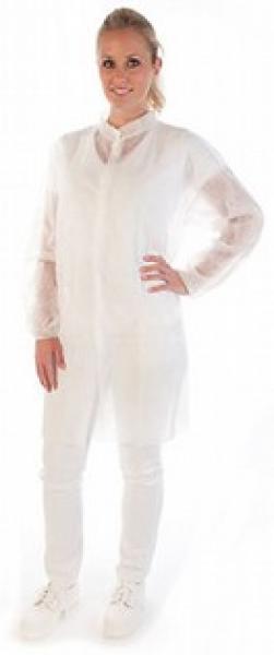 Za enkratno uporabo, dolgi rokavi z manšeto, zapenjanje s pritiskači, visok ovratnik, dolžina do kolen, kompaktna, udobna za nošenje, dihajoča, primerna za živilsko industrijo, HCCAP