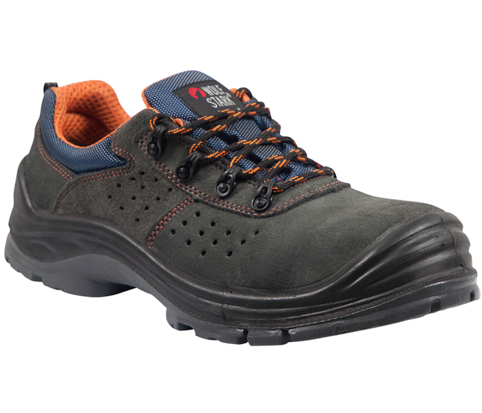 Široka kompozitna zaščitna kapica, podplatni vložek iz Kevlar materiala, oblazinjen jezik, brez kovinskih delov.