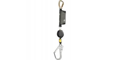 Samopovratni sistem, blažilni element, indikator padca, I oblike, z varovalnim karabinom s samodejnim zaklepanjem iz pocinkanega jekla KOBRA TRI (povezava A) in varovalno kljuko iz pocinkanega jekla FS 90 ST (povezava B), za uporabo pri robovih, nosilnost od 50 kg do 135 kg
