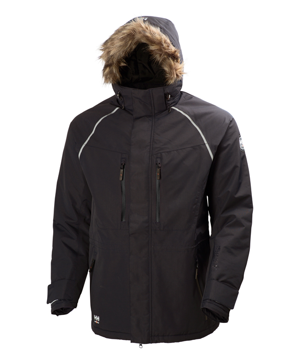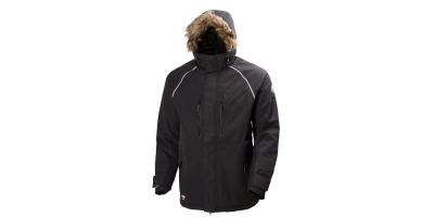 Zimska bunda s prednjim zapenjanjem z dvosmerno zadrgo in prekrivno letvijo, vodoodporna, zaščita pred vetrom in mrazom, snemljiva in prilagodljiva kapuca s snemljivim umetnim krznom, dva prednja žepa z zadrgo, dva prsna žepa z zadrgo, brez šivov v predelu ramen, prilagodljiv rokav v zapestju s sprimnim trakom, visok ovratnik, zaščita brade, odprtine za zračenje v predelu pazduh in rok, zanka v notranjosti za pripenjanje ID kartice, odsevniki