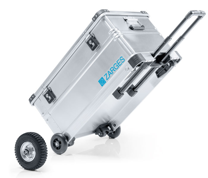 Robovi omogočajo skladanje zabojev - Ojačani robovi, odporni na udarce, s sistemom, ki omogoča zlaganje zabojev enega na drugega. Preklopna zapirala - Čvrsta, z dolgo življenjsko dobo, vgrajeni vtičniki za ključavnico. Obodne in kotne izbokline - Dodatna stabilnost pri zlaganju. Standardna kolesa Ø 50 mm - Iz poliuretana in poliamida, sestavni del vsakega zaboja, omogočajo optimalno mobilnost. Vzmetni ročaj - Ergonomsko oblikovan in izjemno trpežen. Iz aluminija, lahek, hkrati pa izjemno trpežen z nosilnostjo prek 50 kg. Ročaj - Teleskopski, izvlečni, za večjo mobilnost. Osnovni vložek - Odstranljiv, iz PE pene odporne na obrabo. Trakova za fiksiranje pokrova - Boljša stabilnost. Notranji vložki - Široka ponudba vsestransko uporabnih in prilagodljivih vložkov.