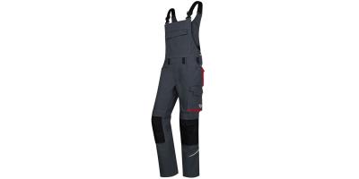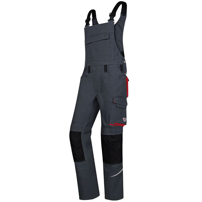 Farmer hlače, nastavljive in elastične naramnice s plastičnimi zaponkami, dvojni prsni žep z zadrgo in poklopcem, dva žepa
