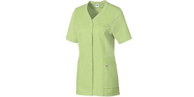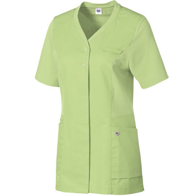 Ženski kroj, dolžina hrbtnega dela 68, kratki rokavi, V izrez, prednje zapenjanje s pritiskači, dva prostorna stranska žepa (en z žepom za pozivnik), zanka za pritrditev ID kartice, izredno udobje nošenja zaradi bombaža na notranji strani tunike, primerno za industrijsko pranje