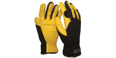 Značilnosti: rokavice iz trpežnega govejega usnja za ublažitev vibracij, v predel dlani všita etil-vinil-acetatna (EVA) podloga za absorpcijo vibracij, podloga absorbira vibracije pri delu s težko mehanizacijo in preprečuje utrujenost rok, dvojni elastični šivi v zapestju za boljše prileganje