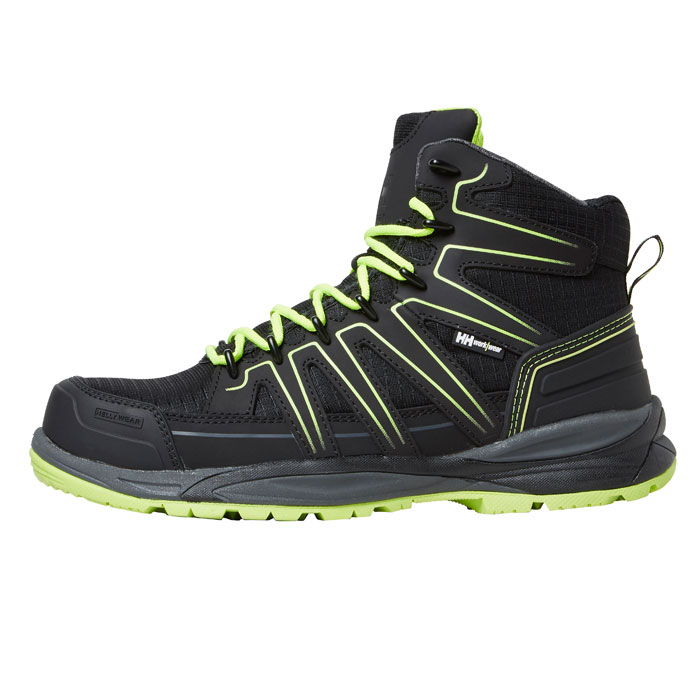 Dobrovidni čevlji, kompozitna zaščitna kapica, kompozitni zaščitni podplatni vložek, lahek in oblazinjen EVA notranjik, protizdrsni gumijasti podplat, brez kovinskih delov.