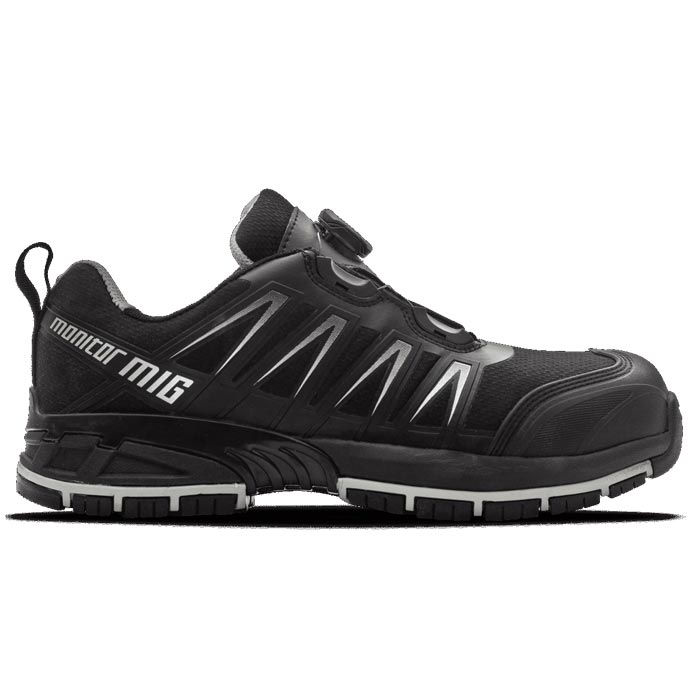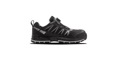 Aluminijasta zaščitna kapica, kompozitni zaščitni podplatni vložek, oblazinjen jezik, BOA sistem hitrega zavezovanja, široko kopito, ESD, za EPA okolja, robusten videz.