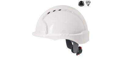 Moderna in udobna zaščitna čelada primerna za delo v različnih industrijskih okoljih, rahlo podaljšan tilni predel, možnost namestitve različnih dodatkov, stranske odprtine za zračenje, 30mm reža za dodatke, odpornost na mraz do -40°C, PH nevtralen ter dermatološko testiran trak proti potenju iz bombaža s poroznim PU premazom za maksimalno vpijanje znoja, HDPE šest točkovna mreža, lahka in hitra nastavitev širine obsega z drsnikom, za obseg glave od 53-61 cm, 1-2-3 točkovna nastavitev globine čelade za boljše prileganje, antistatična, primerna za delo v eksplozivnih nevarnih območjih, opcija namestitve dodatkov (vizirji, glušniki, očala)