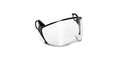 Odporen na praske, neroseč, panoramska leča združljiva s korekcijskimi očali (jih prekrije), odporen spodnji rob, zgornja zaščita iz gume proti vdoru tekočine.