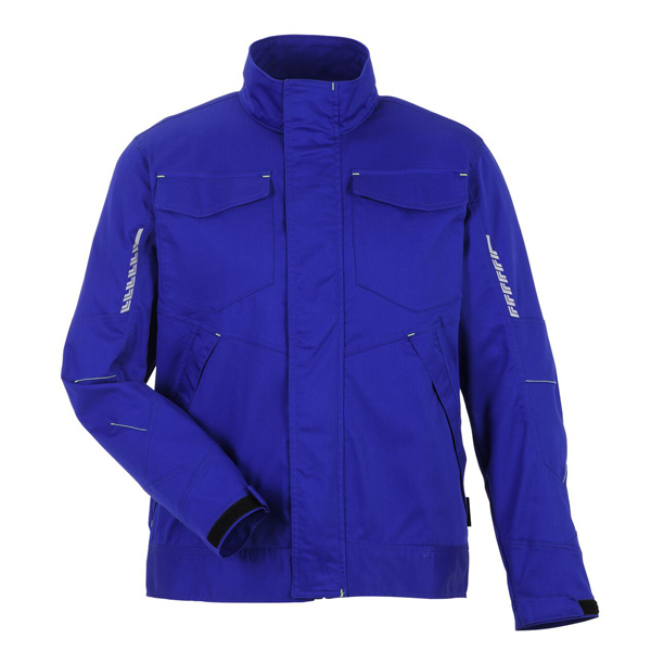 Delovna jakna z zapiranjem na zadrgo s prekrivno letvijo na sprimni trak, dva stranska žepa z zapiranjem na zadrgo s prekrivno letvijo na sprimni trak, dva prsna žepa s poklopcem na sprimni trak, odsevni elementi na rokavih in hrbtu, visok ovratnik z zaščito za brado, prilagajanje širine v zapestjih s sprimnim trakom.