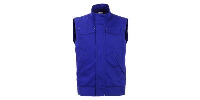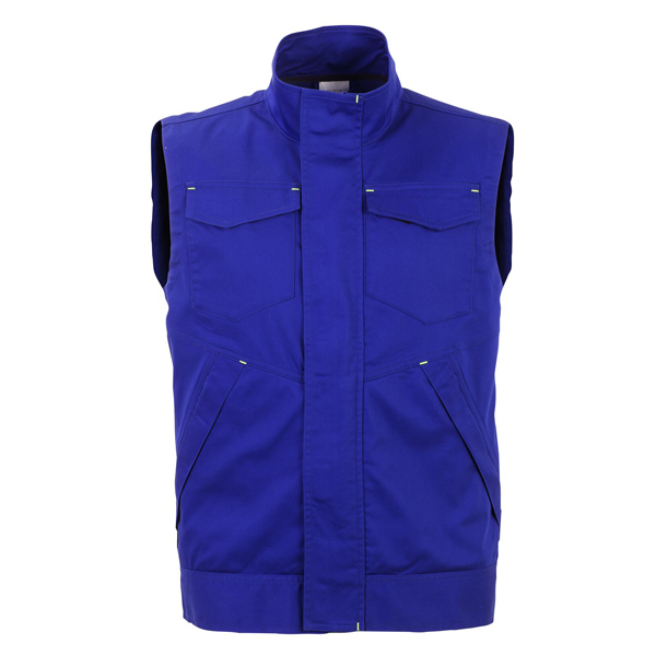 Delovni telovnik z zapiranjem na zadrgo s prekrivno letvijo na sprimni trak, dva stranska žepa z zapiranjem na zadrgo s prekrivno letvijo na sprimni trak, dva prsna žepa s poklopcem na sprimni trak, odsevni elementi na hrbtu, visok ovratnik z zaščito za brado.